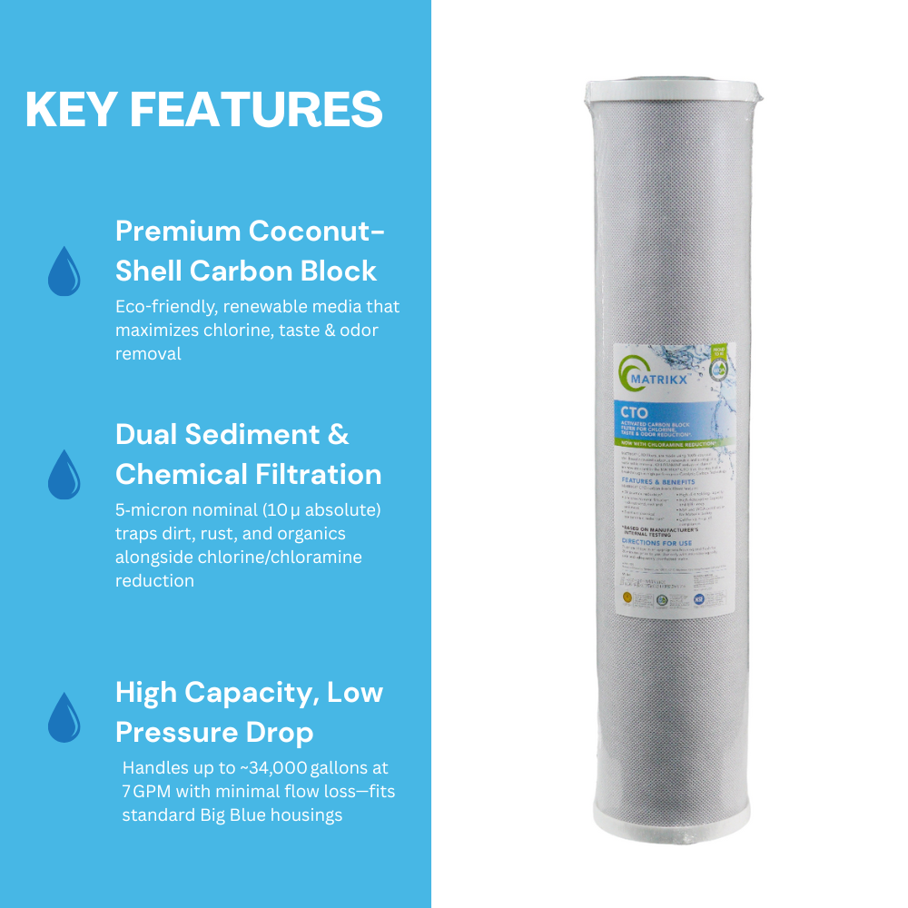 The KX Matrikx CTO 20" Big Blue Carbon Block Water Filter 32-450-20-Green