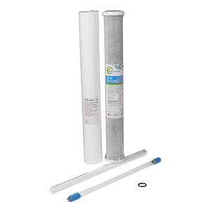This combo includes the filters and UV lamp which require replacement annually. Includes HUM replacement lamp UVS 400152, 400151 quartz sleeve, carbon filter 20" x 2.5" SMF 32-250-20-Green and sediment filter 20" x 2.5" SMF 1227868-V